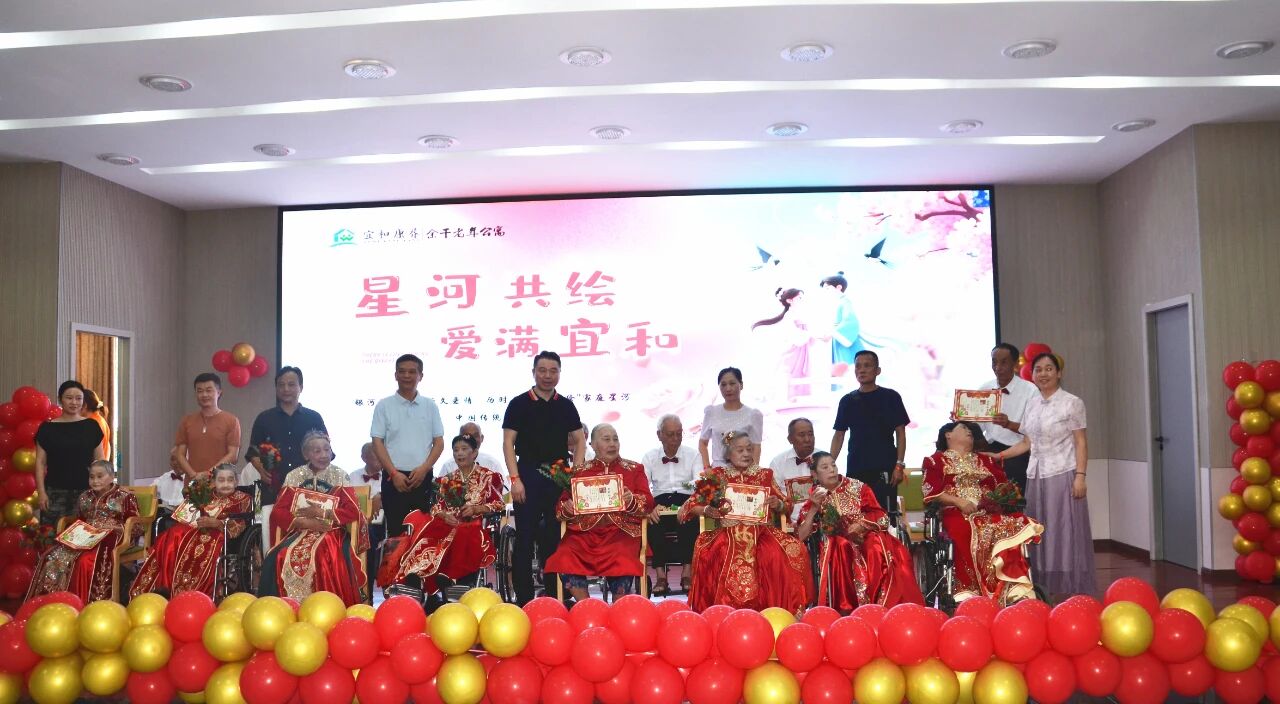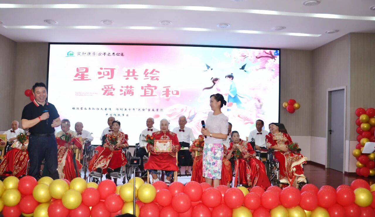 8月29日七夕佳节之际,“星河共绘,爱满宜和”金婚庆典在余干老年公寓夕阳红活动中心温馨举行。余干老年大学校长张伯涛、县书法协会主席童百善、东方韵艺术团团长夏东波等嘉宾应邀出席,宜和康养集团董事长徐雨亮与夫人江赛女、董事会成员江四女及公寓院长郑小妹共同参与。