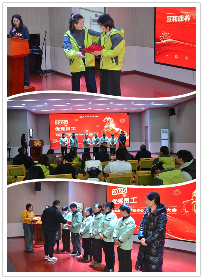 1 月 24 日,余干老年公寓 2025 年终总结暨表彰大会在夕阳红文化活动中心影音大厅隆重举行。宜和康养董事长徐雨亮莅临指导,公寓全体行政人员齐聚一堂,复盘年度成效,共绘发展蓝图。