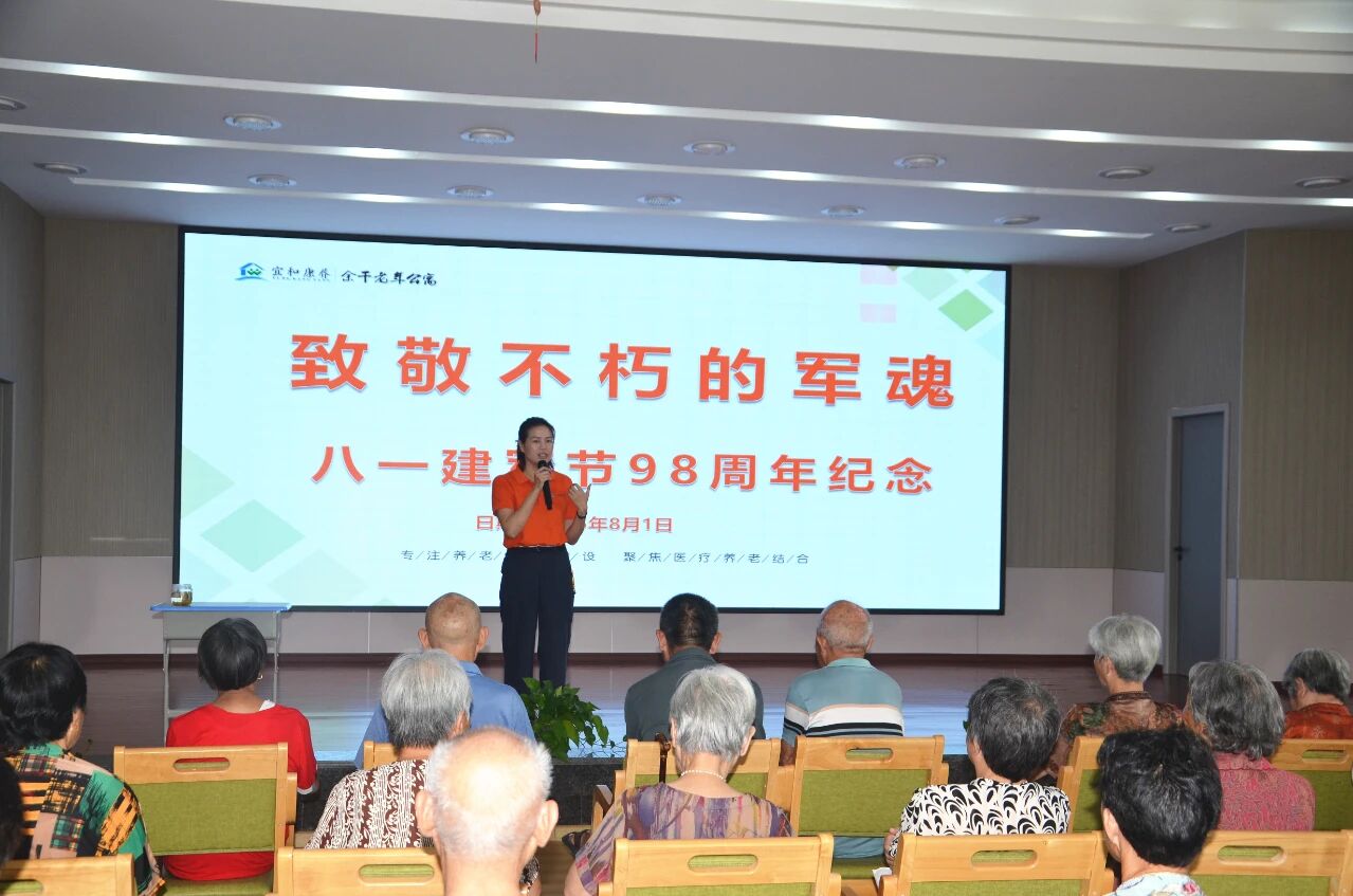 随后,郑院长走到台前,深情地为大家讲述了八一建军节的来历。从南昌起义的枪声划破夜空,到革命先辈们在战火中不屈不挠的奋斗,郑院长的话语带着大家重温了那段波澜壮阔的历史,让在场的每一位长辈都深刻感受到了如今幸福生活的来之不易,也更加深了对革命先辈的崇敬与缅怀之情。