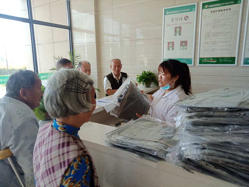 5月27日,余干县社会福利中心康助楼服务中心人头攒动,像过节一样热闹。自理老人排着队,失能半失能老人由护理人员推着,原来他们是来这里统一领取夏天的衣服。“感谢党和政府,感谢福利中心给我们这些特困人员送来了夏天换季的衣物!“章伯伯换上漂亮的夏装,开心地说。