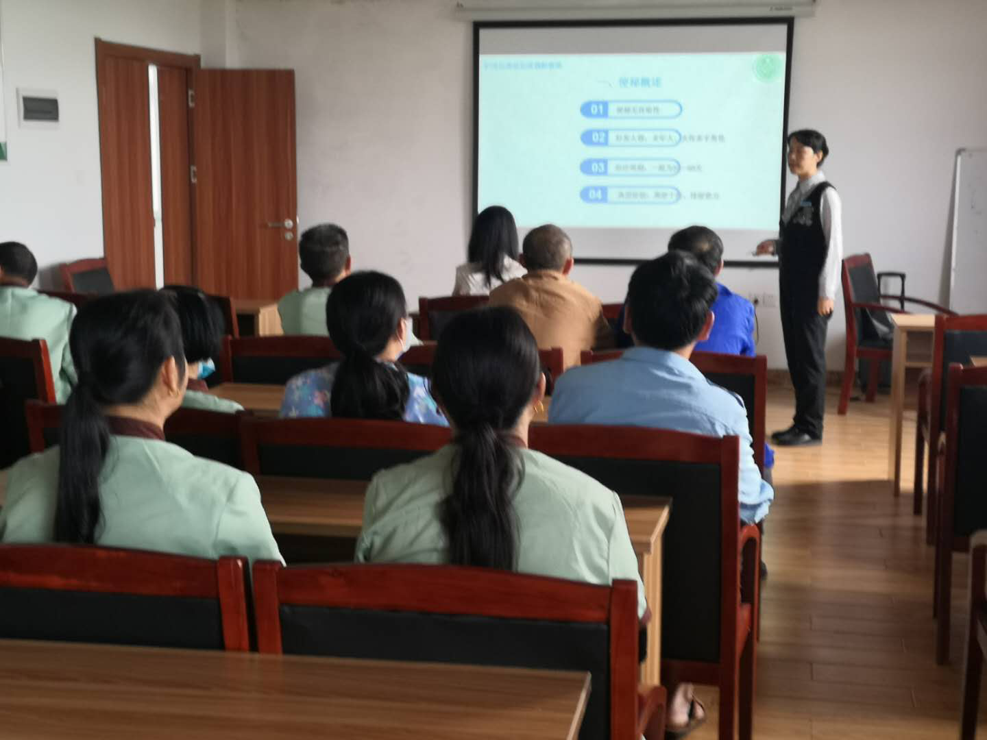 10月6日培训的内容为健康一体机实操。康主任针对余干县社会福利中心新配备的健康一体机各部分组成、功能及应用耐心细致的进行了全面系统的讲解,并对一体机的各种配置使用、数据上传及查看等方面进行了面对面、手把手现场指导示范。康主任要求护理员充分发挥工作中便捷应有的作用,为康助楼老人进行健康体检必须经一体机上传数据,切实为老人们做好健康服务。
