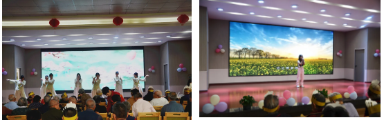 宜和满园、乐享天伦!一场精彩纷呈的文艺表演拉开了生日会的序幕。由余干县职教中心师生们带来的独唱、独舞、朗诵等表演,吸引了在场所有长者,他们把自己对长辈的敬爱编排在中,表达在自己的舞姿中!