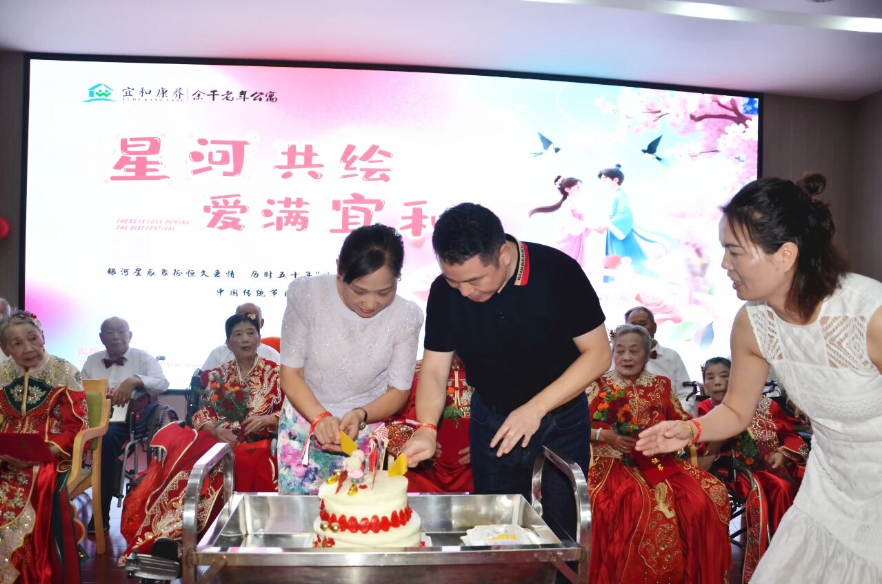 8月29日七夕佳节之际,“星河共绘,爱满宜和”金婚庆典在余干老年公寓夕阳红活动中心温馨举行。余干老年大学校长张伯涛、县书法协会主席童百善、东方韵艺术团团长夏东波等嘉宾应邀出席,宜和康养集团董事长徐雨亮与夫人江赛女、董事会成员江四女及公寓院长郑小妹共同参与。